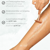 Geniesse eine gründliche und sanfte Rasur ohne eingewachsene Haare, wiederholte Hautirritationen und trockene Haut, während du gleichzeitig deine ökologischen Auswirkungen reduzierst.