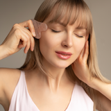 Dieser Gua Sha für das Gesicht wird aus 100% Rosenquarz hergestellt und hilft, Verspannungen zu lösen, die Lymphdrainage zu fördern und die Aufnahme von Kosmetika zu erleichtern.